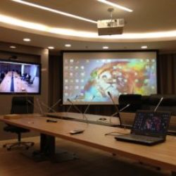 Установлена конгресс система BOSCH и система управления AMX, реализованы автонаведение и пристрелка PTZ-камер, управление AV-комплексом, светом, шторами и климатом с I-pad и ПК администратора.