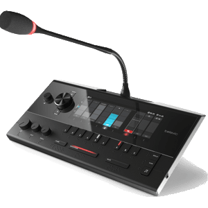 Персональные микрофоны расположены на каждом рабочем месте переговорного стола системы. При проведении конференций в небольшой комнате до 6-ти человек можно использовать стандартный микрофон от видеотерминала, который обеспечивает технологию захвата звука 360 градусов. Для большой переговорной комнаты, оснащенной системой ВКС применяются микрофонные конференц-системы. В этом случае, каждое рабочее место системы оснащается персональным микрофоном. При активации участником микрофона, камера осуществляет автоматическое наведение на данного участника.